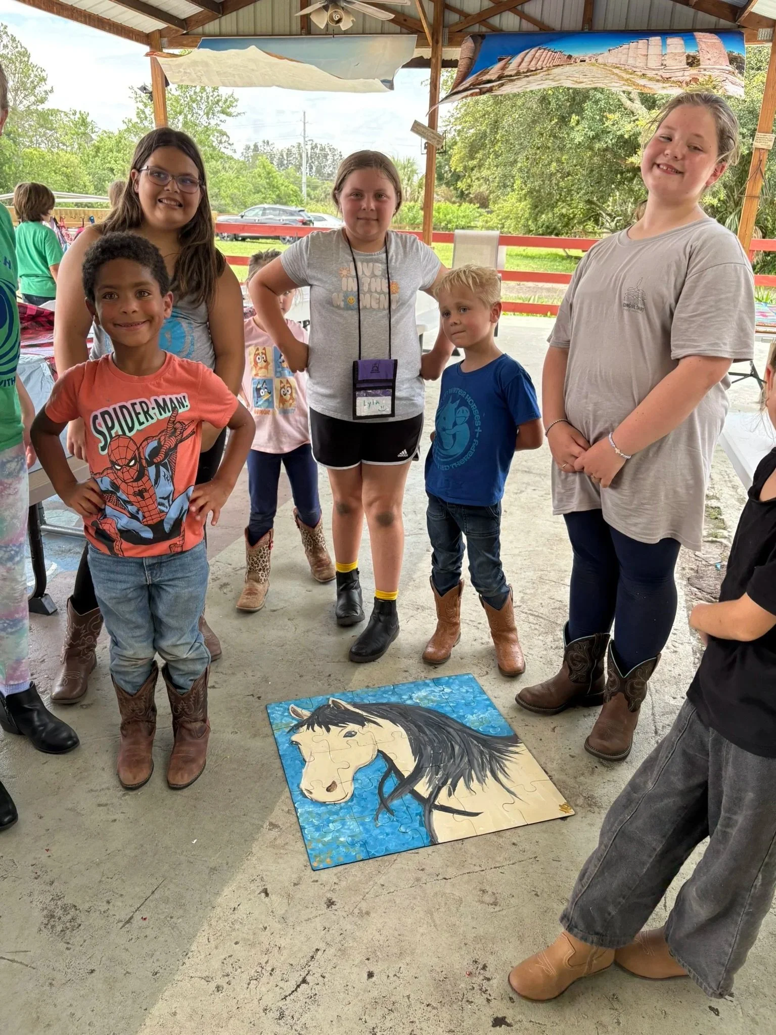 Walk on Water’s Reading Enrichment Summer Program uses the research-based Reading Reins curriculum to strengthen literacy skills in a calm, engaging ranch environment. Led by a certified teacher, participants build foundational reading skills through structured, inclusive instruction alongside our horses in this unmounted program.